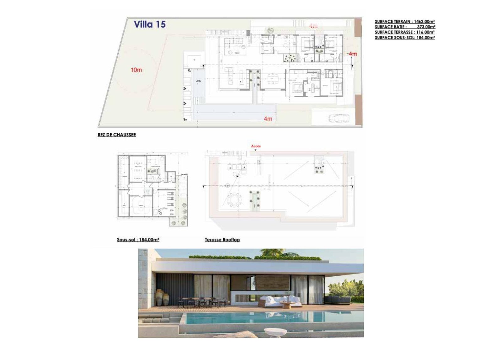 Érigée sur un terrain de 1 462 m², cette résidence d’exception développe une surface habitable de 373 m², sublimée par une terrasse spacieuse de 116 m² et un sous-sol de 184 m², prêt à accueillir vos projets les plus ambitieux : salle de sport, espace bien-être, salle de jeux ou cinéma privé.