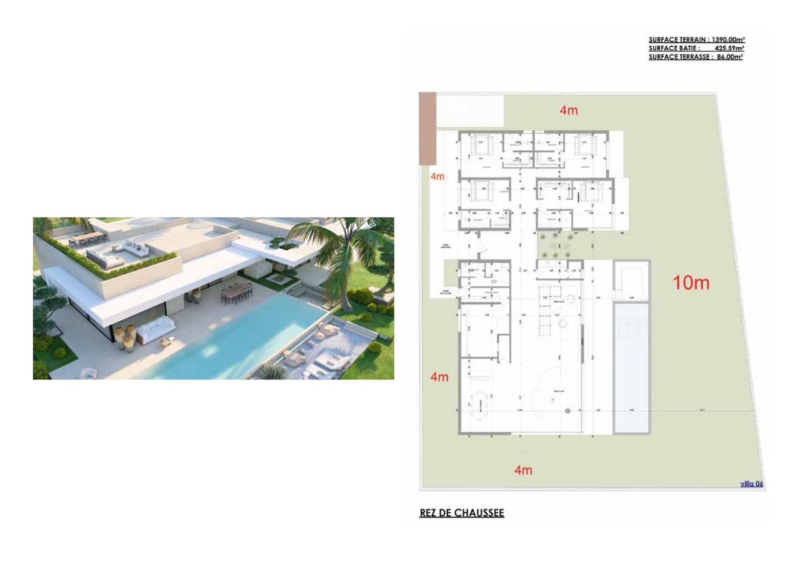 Organisée autour de 4 suites lumineuses et de 5 salles de bain, la villa offre une circulation fluide entre les espaces de vie, favorisant intimité et convivialité. Le salon, spacieux et ouvert sur l’extérieur, se prolonge naturellement vers une terrasse de 86 m², idéale pour accueillir des instants de partage ou de détente.